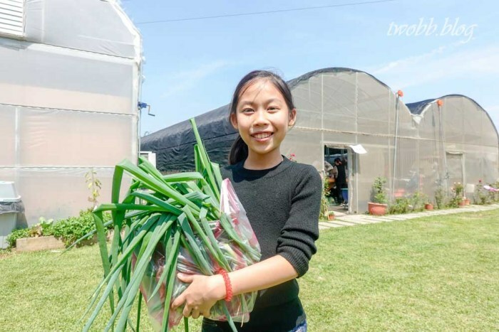 因為我跟妮姊都是青蔥的愛好者,當天專門進攻青蔥,看看我們採收了一大袋,已經想好各種青蔥料理。無論包水餃、煎蔥蛋、蔥爆牛肉各種料理。看到妮姊的笑容就知道,當天他採收的相當開心,甚至說長大想當農夫的願望!