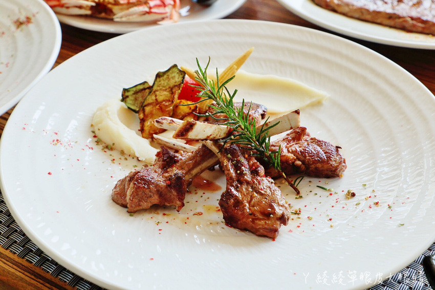 主廚說餐廳的紐西蘭小羔羊,是特選9個月以下年齡的小羔羊,取自第1~4根肋骨間的肩胛部位,ㄚ綾綾覺得羊肉肉質挺嫩的、沒有什麼羊羶味。