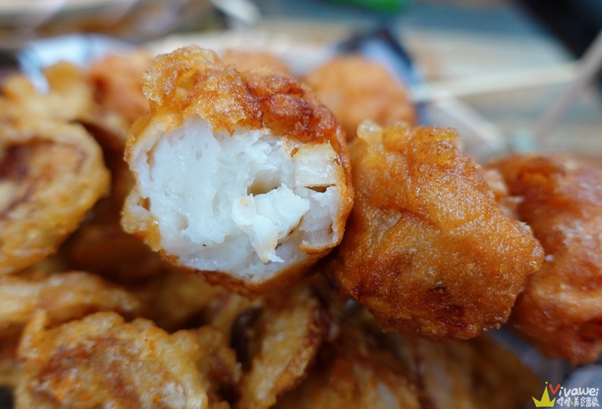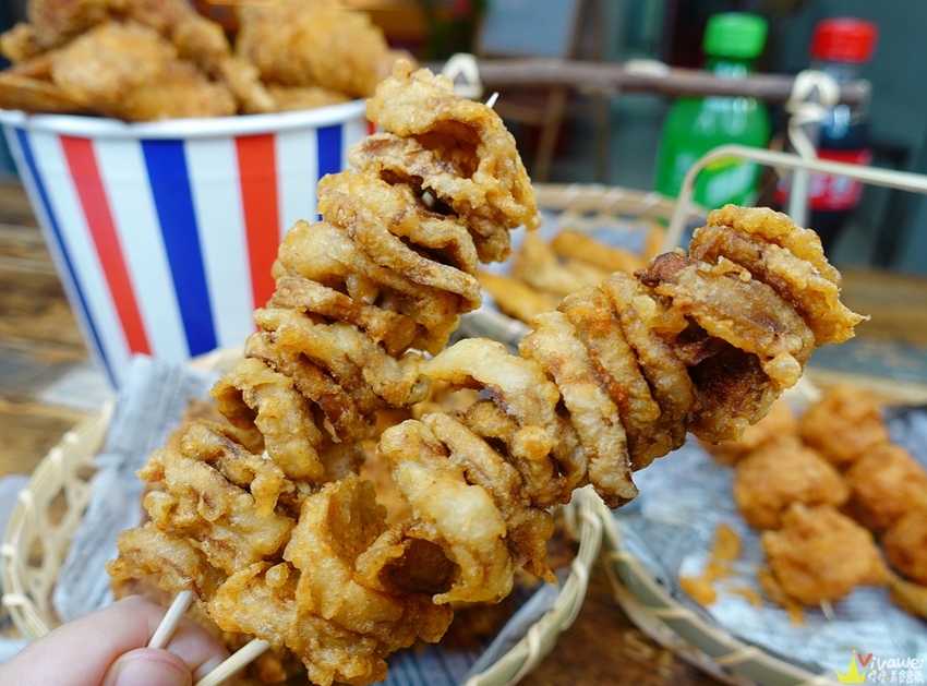 ▲派對A餐有兩串花枝丸~店家選用知名大廠牌的花枝丸!炸到金黃色的黃金花枝丸,外層炸衣薄薄一層,不會太油膩,裡面可以吃到新鮮的花枝塊.口感香脆彈牙!