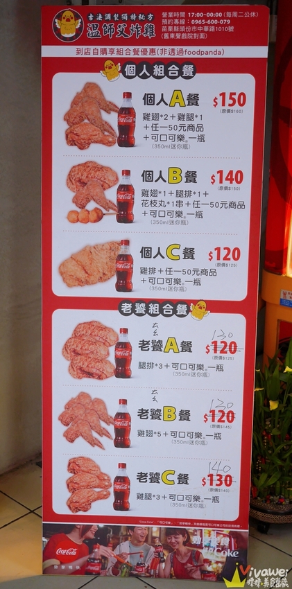 ▲温師父炸雞的套餐彙整表,看表單就可以清楚知道每個套餐的內容物!因為雞腿和雞排備餐時間較長~大約要炸15-17分鐘~如果要點炸雞一定要事先打電話訂餐~才不會等太久唷!