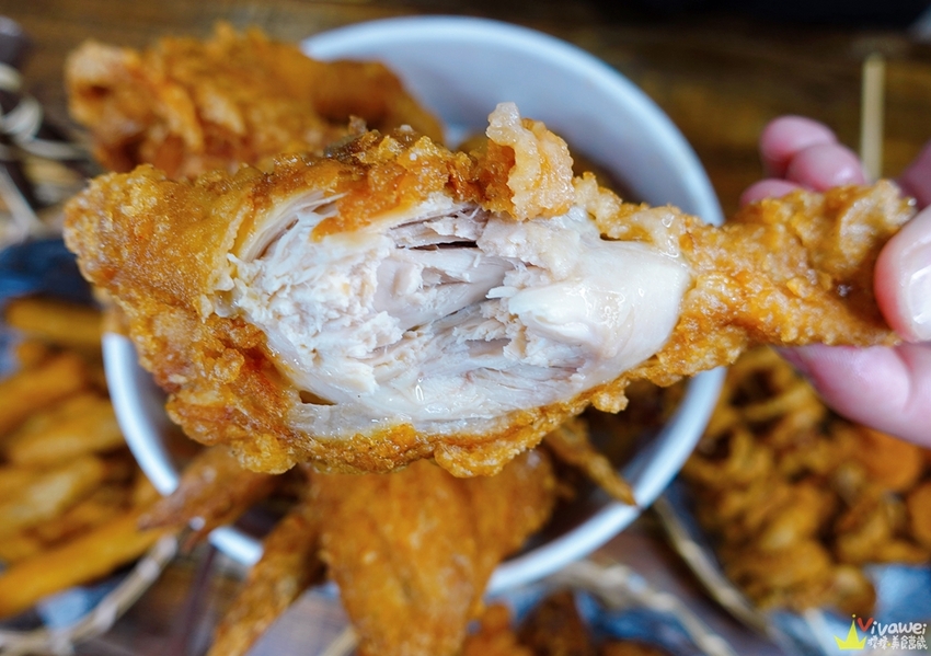 ▲派對A餐裡面有2支雞腿,雞腿單價1支45元,薄皮的炸雞腿口感很讚,因為店家外層的粉漿有經過特殊處理,不但可以鎖住肉汁,還可以吃到雞腿JUICY的肉汁和口感😋