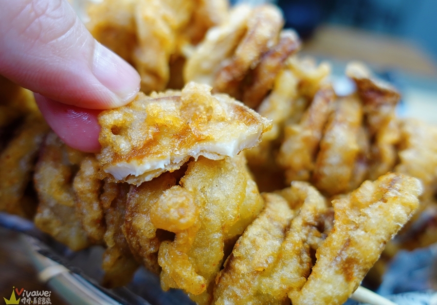 ▲杏鮑菇也是店家熱賣的品項!店家在清洗和切塊以後,會將杏鮑菇醃漬一段時間,接著經過靜置和密封一段時間以後,才會下鍋油炸!杏鮑菇口感很Q~也能吃到他食材本身的甜味!