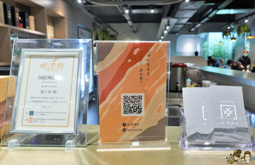 在櫃檯前面也有看到唎酒師 國際證照(日本酒學部日本酒侍酒研究會唎酒師認證)