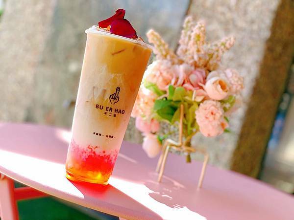 不二號的玫瑰露加了整片看得見的食用玫瑰,讓一杯原本只是解渴,加強體重存在感的飲料,晃眼變成一杯好嬌艷,視覺滿分的手搖。