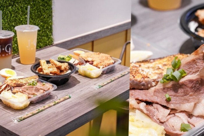 榮華炒麵的台中平價便當價位百元有找,這次點了豬腳便當和爌肉便當,基本店當會搭配4菜,有每日燙青菜、台式泡菜、海帶、豆乾、筍乾、滷豆腐可做挑選(僅限內用與來店外帶的客人可選)