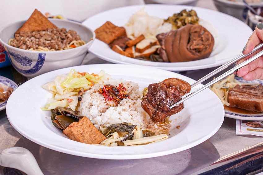 榮華炒麵的餐點都是現點現做,而且用料給的很大方,隨便一撈讓白飯和炒麵上全都是滿滿的肉燥,就連豬腳、爌肉也全是自滷自捆,絕對不假他手~