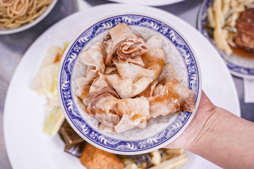 蒜泥白肉選用肥瘦均等的豬肉片,淋上醬油、蒜末外,還可再淋上特製的蒜頭辣椒醬油,味道會更勁夠香哦~