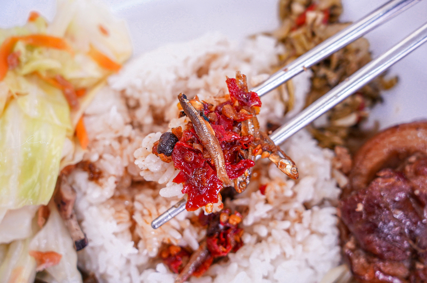 榮華炒麵的自製小魚辣椒絕不要錯過,吃起來只有微微的麻辣感,但卻有著鮮美的小魚乾海味,不論是搭配炒麵、便當一起,都很下飯又開胃!