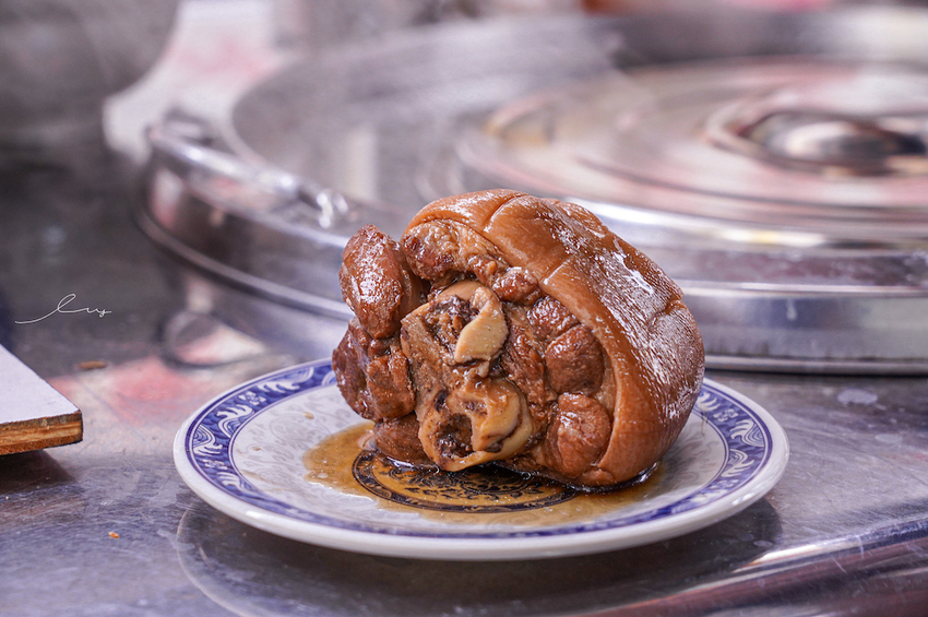豬腳超大一塊,不會一夾就鬆散,大口咬下能夠咬到Q軟彈牙的豬皮,再來是軟嫩滷香的豬腳肉,味道不會過於鹹膩,也不會吃完覺得油膩膩的,是塊相當有口感的豬腳!