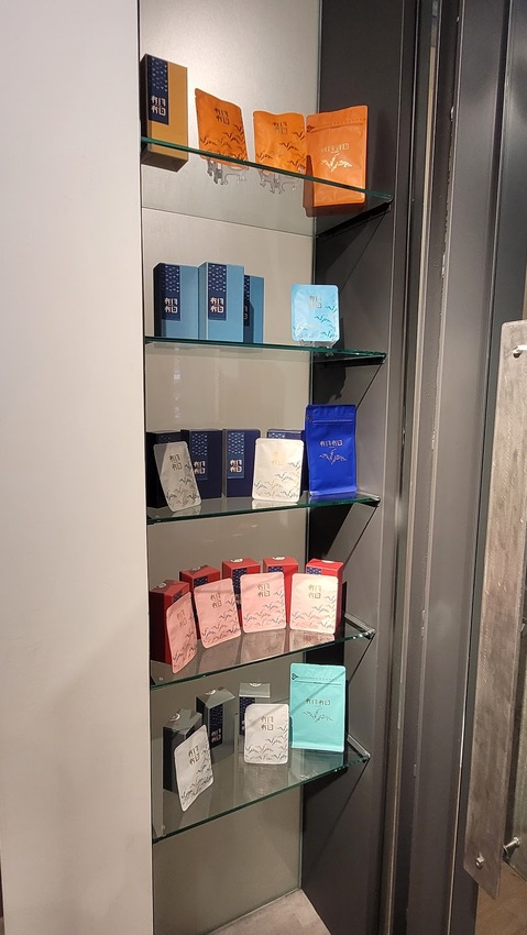 整架都是茶品的展示,每一個顏色對應的茶品也都不同。