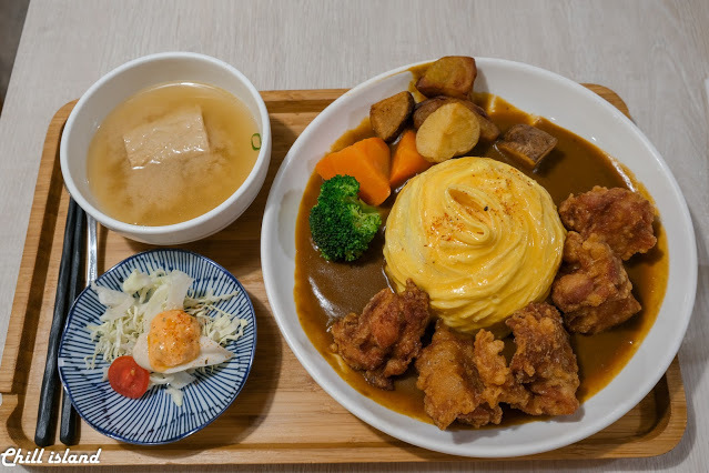 超美的唐楊雞咖哩+螺旋蛋,雞肉軟嫩外皮酥脆,蛋香濃口感有層次