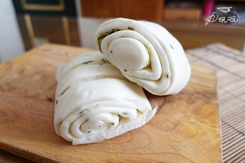 螺旋的方式,讓每一層沾附起士。柔軟的麵糰不像一般饅頭偏紮實有嚼勁,軟Q好入口加上起士的鹹香,還不錯。