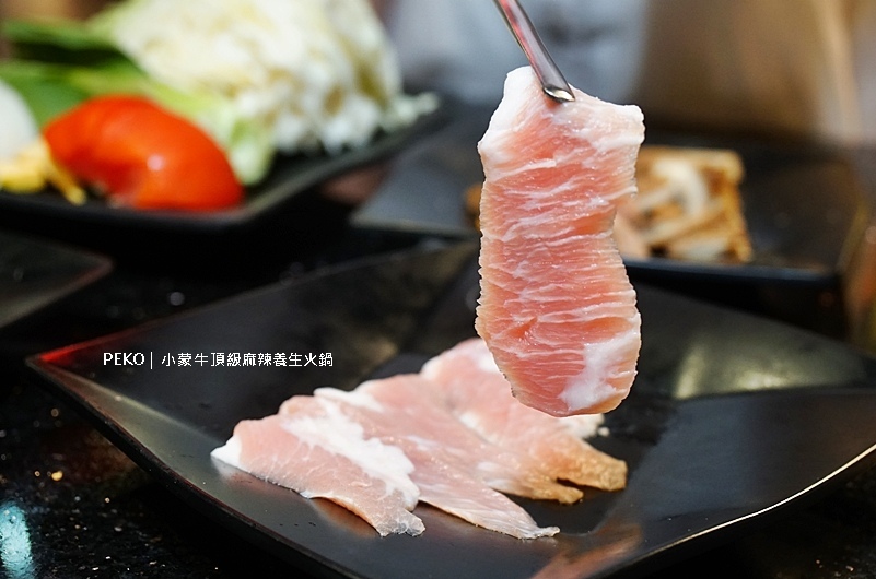 這個部位的肉在火鍋店算是常客,但「小蒙牛」的霜降牛肉不只油花好看口感也不錯,超大片的呈現方式霸氣十足,品嚐時建議一口塞,會讓人滿足到說不出話。