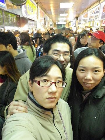趕緊買完我們三個拍照留念一下,快快逃離現場~~因為那人潮真的是無告恐怖啦>"<