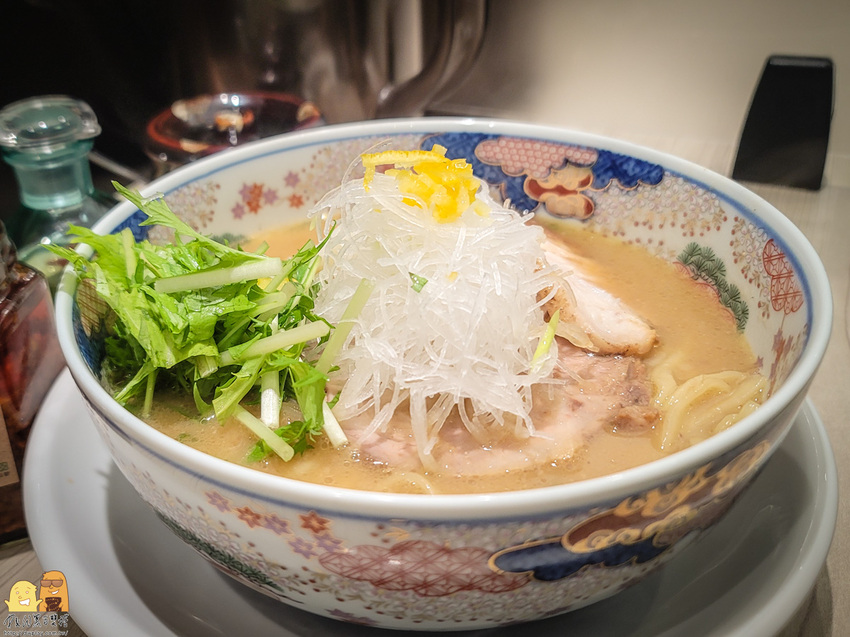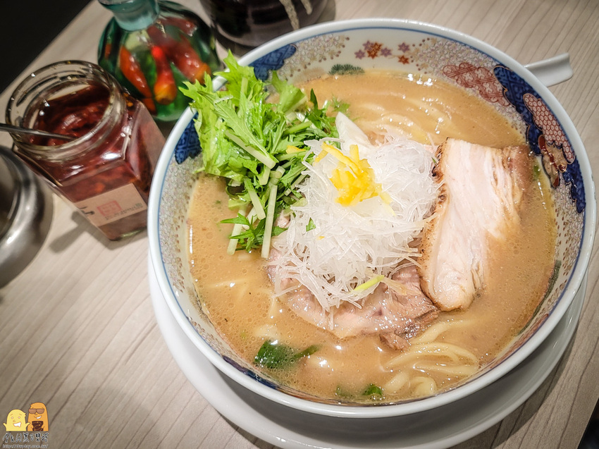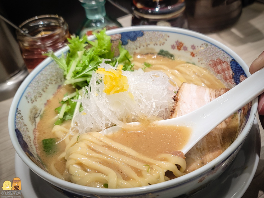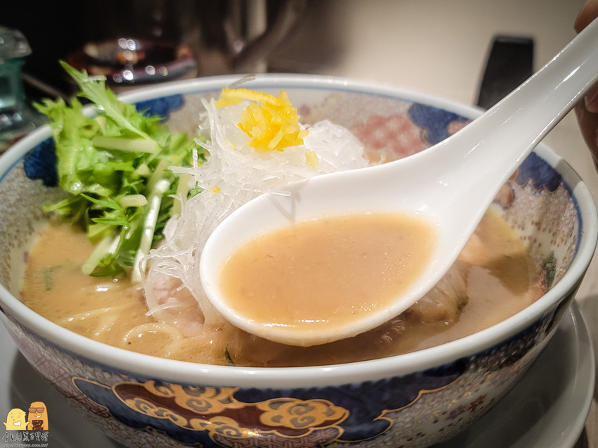 中山站烹星拉麵乾物濃湯拉麵的湯頭,居然除了豚骨濃郁的風味之外,還會有柚子香氣的餘韻在口中環繞!太好喝了吧這個湯!