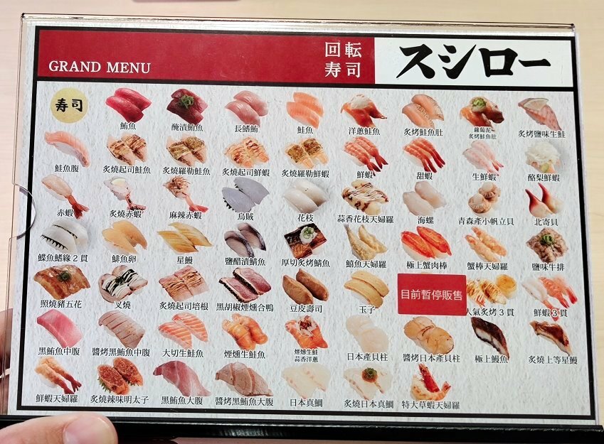 ▼桌上菜單上頭有所有壽司的品項,點餐時也可以參考!
