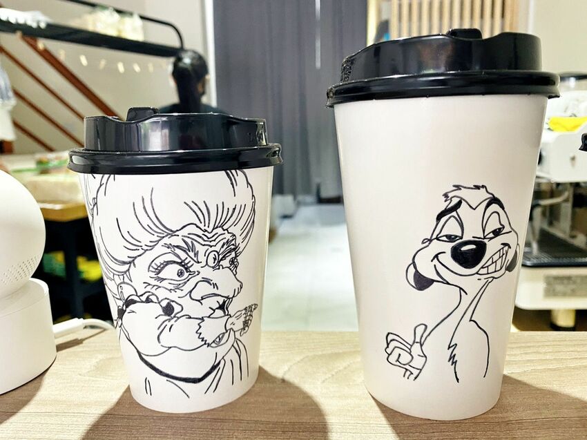 我還有發現可愛的小彩蛋,就是老闆的手繪紙杯!老闆娘說,老闆趁沒什麼客人的時候會隨手畫畫,畫工真的超強!