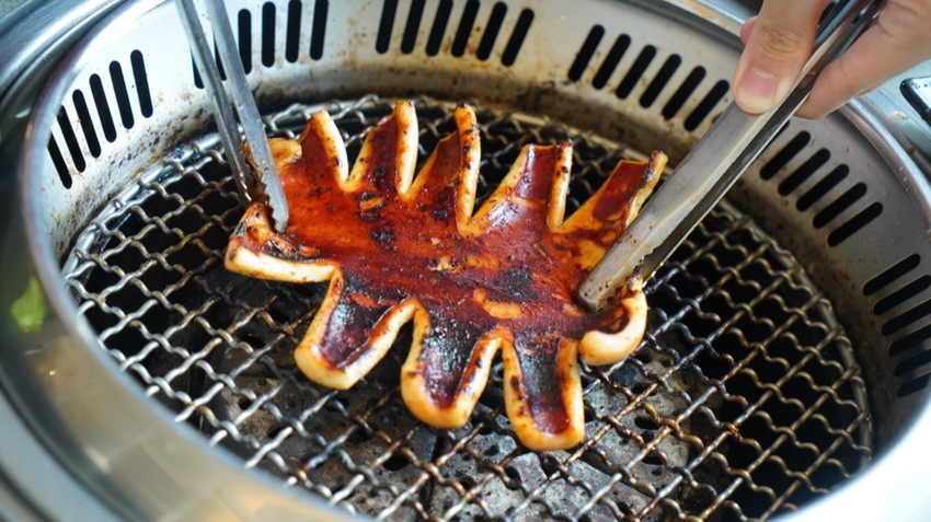 除了肉品之外,超夯的燒肉海鮮的部分也是一極棒,看看這超大隻的阿根廷魷魚,肉質超厚實,吃起來口感又彈又脆,沾點椒鹽就可以吃到魷魚鮮甜滋味~