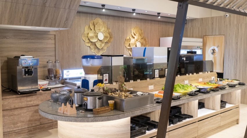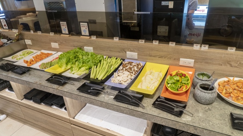 身爲高CP值燒肉吃到飽的人氣餐飲品牌,食材自助吧台同樣也是豪氣路線啦!「超夯の燒肉」得自助區有各式蔬菜、水果、醬料、飲料、霜淇淋機以及明治冰淇淋,蔬果食材新鮮、飲料選擇豐富,所有食材通通任你挑選!