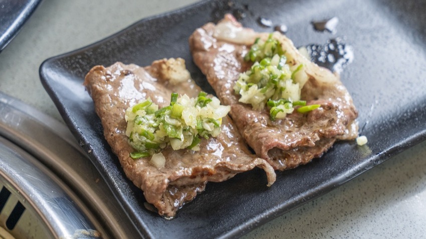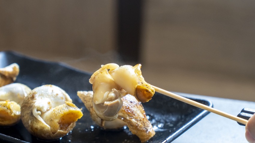 接著端上這整桌最大的亮點「芭比娃娃翼板牛」,美國Prime等級的翼板牛,只要烤到5分熟,簡單灑點鹽在肉片上面就能有提鮮的效果,口感軟嫩多汁,天然牛肉香氣十足,相較於一般油脂少的翼板牛,他們家的美國Prime等級的翼板牛更加令人驚艷!