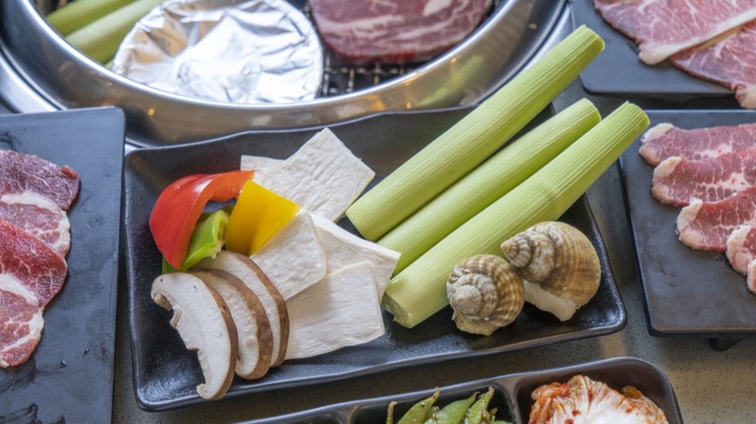 如果是點頂級859老饕的朋友,餐廳會先送上基本盤,光是這基本盤就已經很有飽足感了,一大盤就能一次吃到帶骨牛排、松阪豬、櫻桃鴨、骰子牛、孜然羊排、牛五花,份量十足、擺盤又美觀,不說我還以為是到單點燒肉店用餐呢!