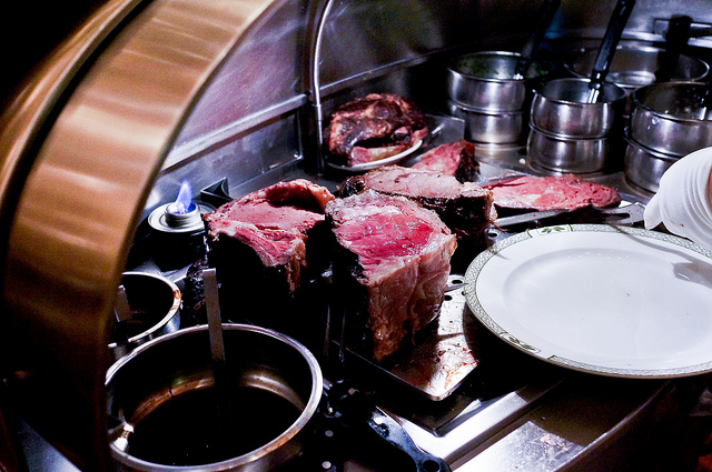 這也是桌邊服務,廚師會推著餐車過來然後現場切牛排