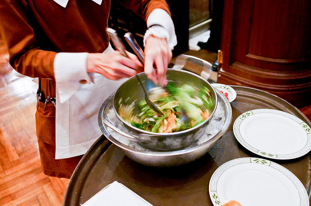 據說Lawry's 是最早開始在牛排主菜前提供沙拉的餐廳,而本日的沙拉就由美麗的侍者為我們桌邊服務。