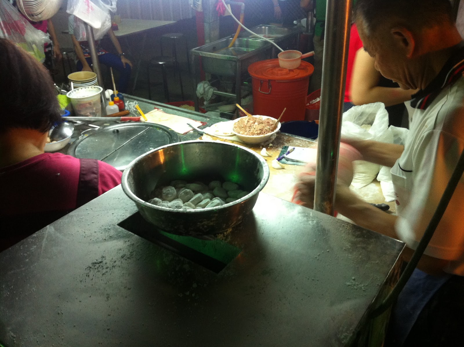 晚上來到就可以看到蒸餃跟鵝肉攤,很誇張的是有4個人在包水餃,1個人在做水餃皮,2個在處理內場,人手整個滿到爆炸。菜單一覽,湯不算太貴20~25,蒸餃尚可接受 40元