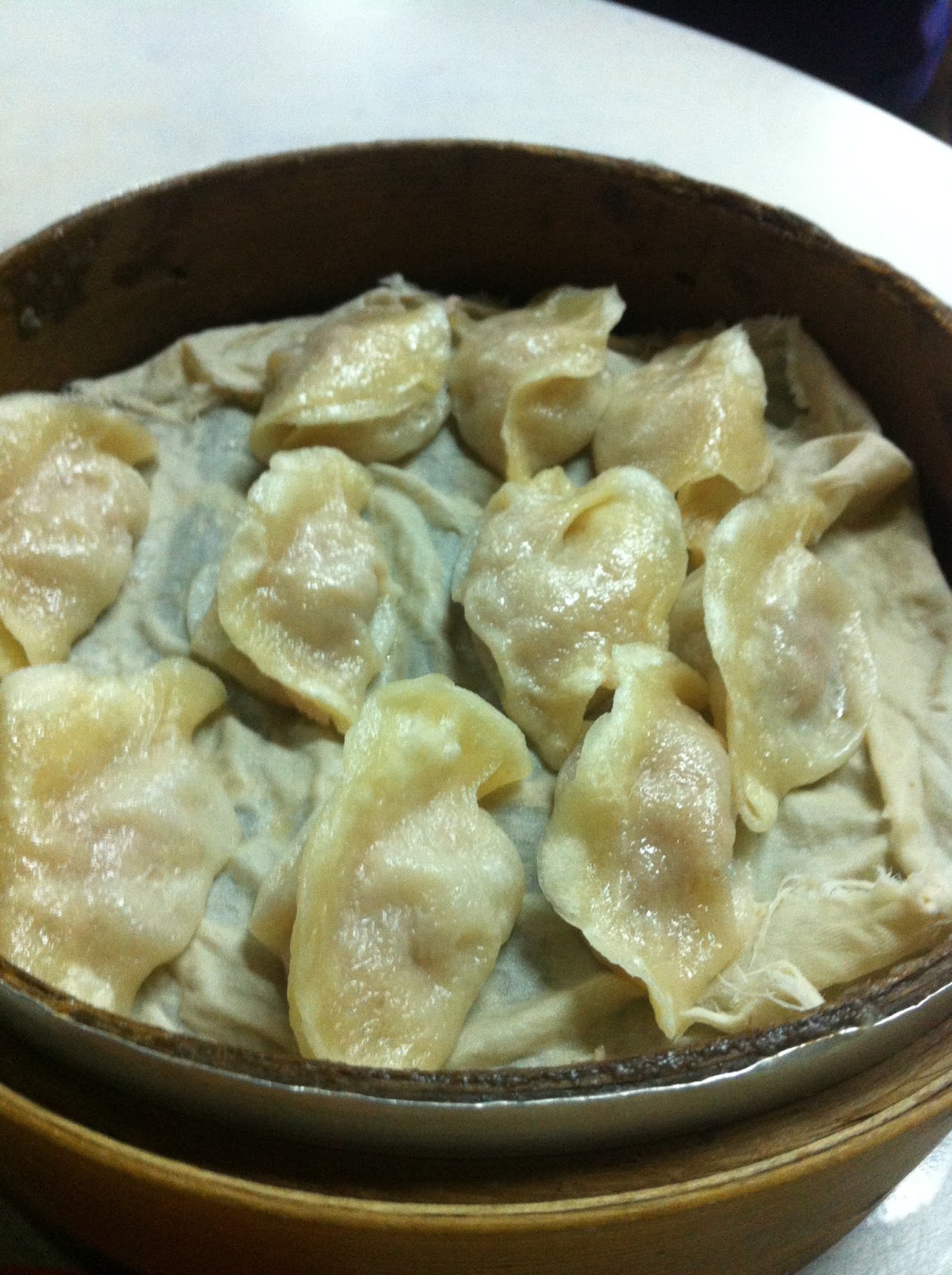 人真的很多在等外帶,內用的也不少,桌椅應該是跟隔壁鵝肉攤共用吧?點了一籠蒸餃跟一碗酸辣湯,便入內坐著