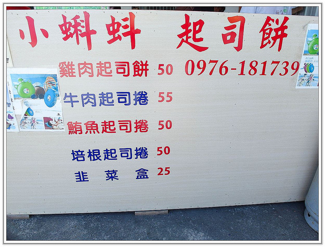起士餅口味有:鮪魚、雞肉、牛肉、培根口味,另有販售韭菜盒,