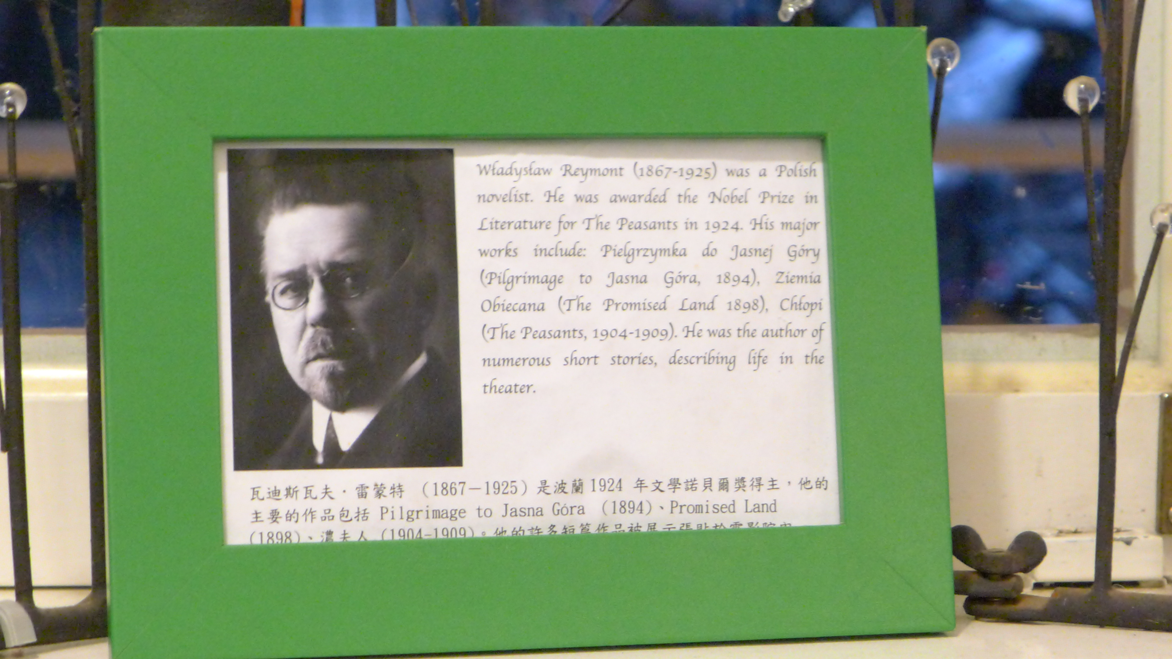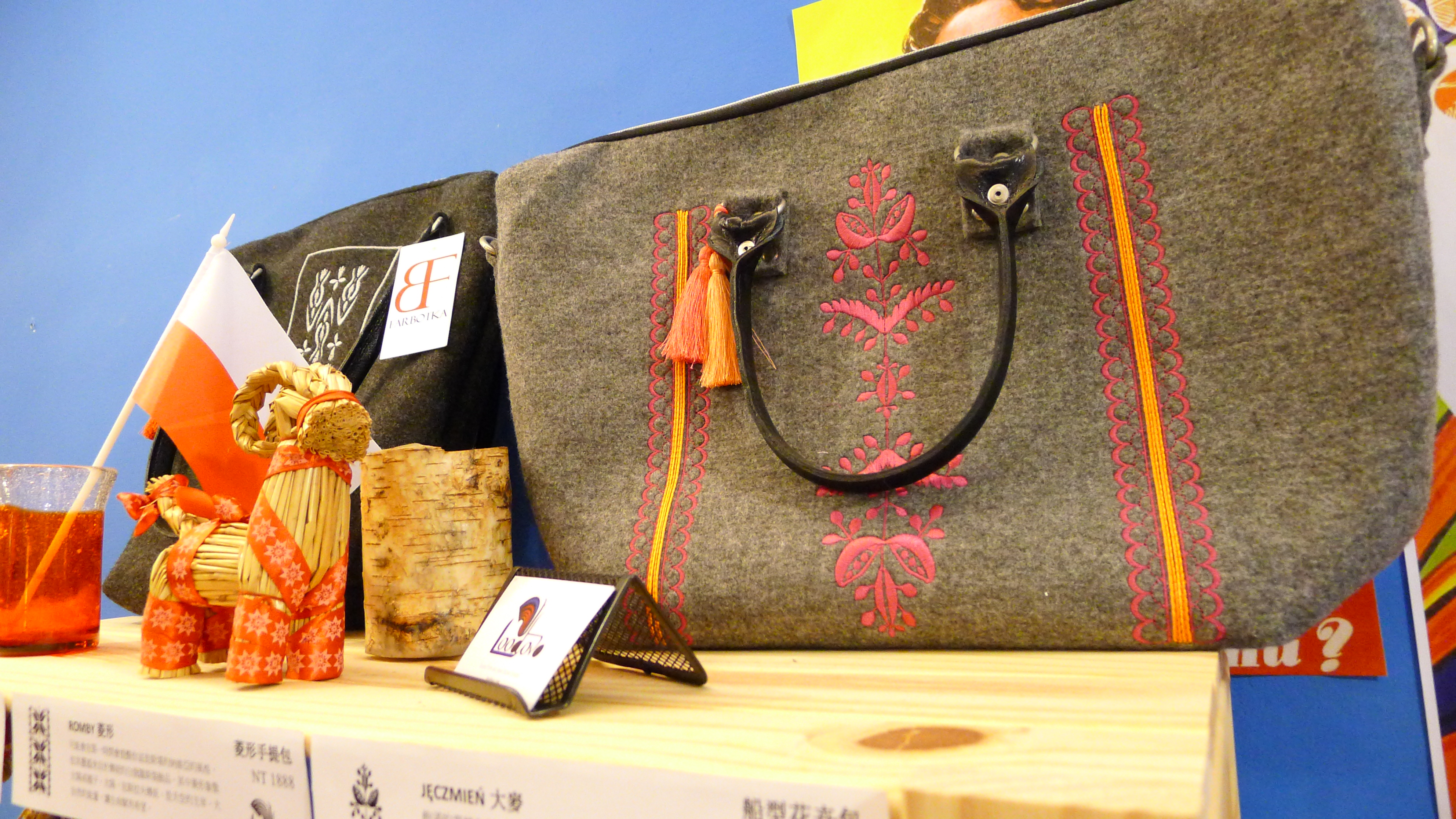 小櫃子的上頭擺的是波蘭國旗跟一些當地物品