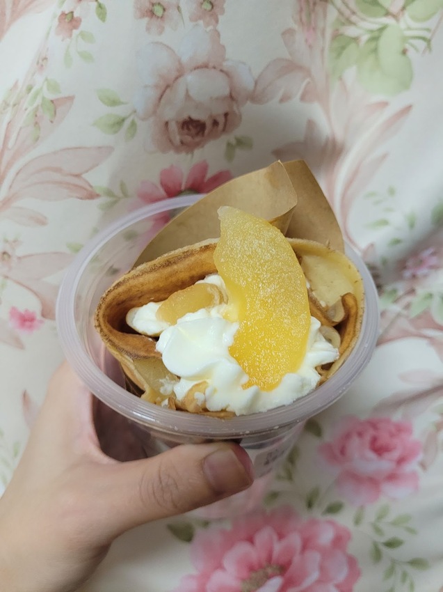 妹妹吃的水蜜桃可麗餅。