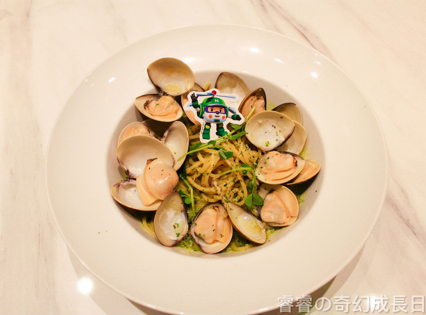 這道是睿媽點的,睿媽覺得滿好吃的,蛤蠣也滿新鮮的呦~~~餐點內還有附上可愛的救援小隊插牌!