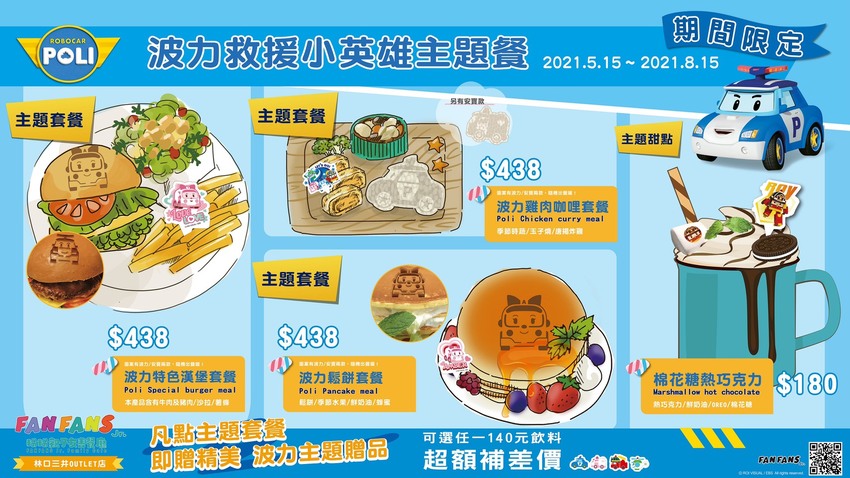 北部首間波力親子主題餐廳來報到!位在於林口三井Outlet的救援小隊波力主題餐廳開幕囉!!FANFANS Jr.粉粉親子友善餐廳首邀卡通明星「波力救援小英雄」入駐林口三井Outlet店,超可愛快閃店只為期三個月!睿媽趁著上禮拜試營運立刻約好友朝聖衝一波!超可愛波力主題快閃店是為期三個月的期間限定親子餐廳,波力主題餐廳推出一系列主題特色餐點,滿滿救援小隊的裝飾,以及超卡哇伊的限定週邊商品,讓進門的爸媽們乖乖掏出錢包買單!