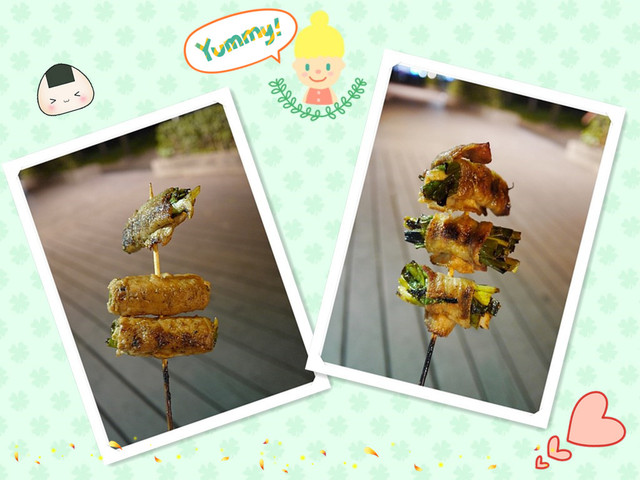 左邊是里肌肉 右邊是豬五花 裡面都包了滿滿的蔥段
