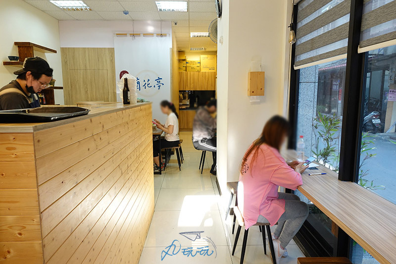 內部長方形的用餐空間,通透乾淨明亮;半開放式的廚房衛生看得見,讓人吃得也安心。內用空間有一大方桌,以及沿著窗邊和牆邊的吧檯桌,約可容納14人左右。