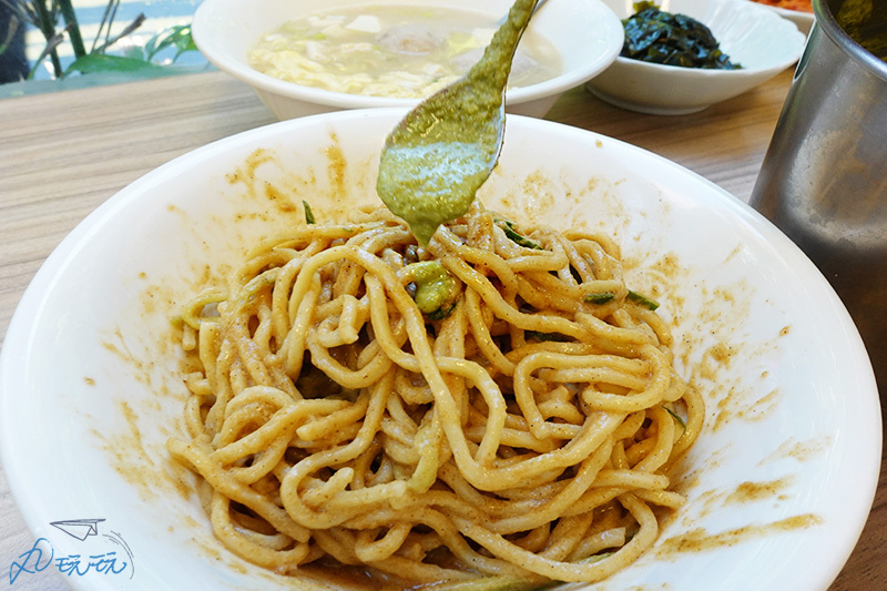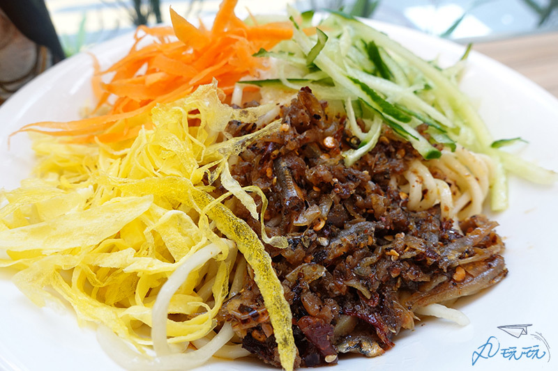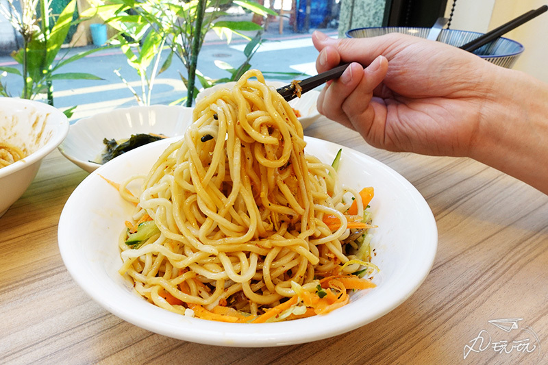 紅蘿蔔絲、小黃瓜絲、蛋絲及XO醬鋪在涼麵上,這碗XO涼麵光視覺上就讓人垂涎。而XO醬同樣是老闆親自調味製成的喔!