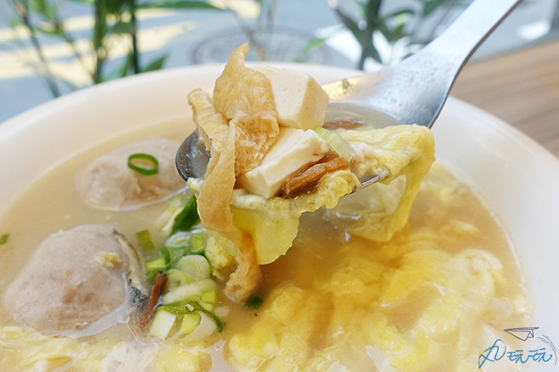 這碗有著貢丸、豆腐、蛋花、魚干和豆皮最後灑上蔥花,應該是我目前喝過的味噌湯中用料最豐富的了!白味噌湯底香濃、蛋花滑、豆腐嫩、咬一口貢丸帶著肉汁香,還有豆皮切片吸飽湯汁,喝下這一碗超滿足。