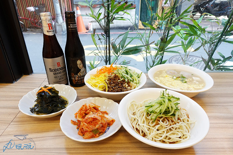 店舖自製涼拌類小菜多以小黃瓜、韓式泡菜、海帶芽為主,偶因季節食材替換不同小菜。小菜口味清爽調味適中不過重而搶了主菜風采,是相當稱職的開胃菜。另外,很少喝黑啤的我意外喜歡黑啤帶有咖啡及巧克力的風味,搭配涼麵確實是相當新奇的組合。