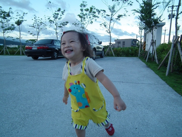 照片重點:看她跑成這樣就知道停車場很寬敞XD