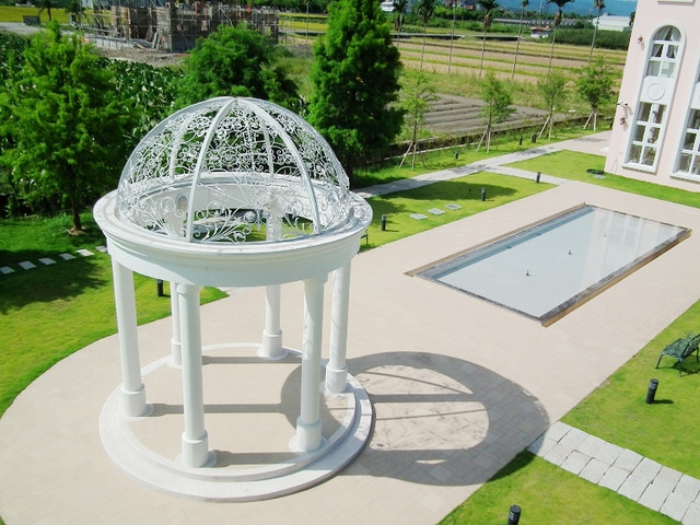 希格瑪花園城堡坐落在員山鄉,四處一片寬廣稻田,獨立一座城堡看起來