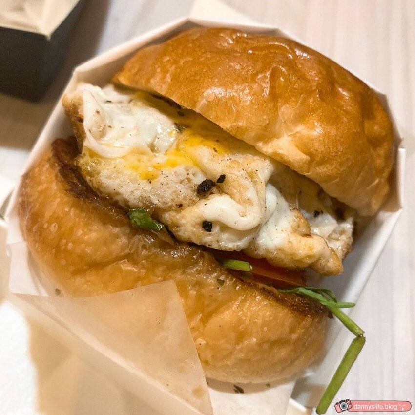 半熟的太陽蛋流出蛋液讓漢堡更多汁
