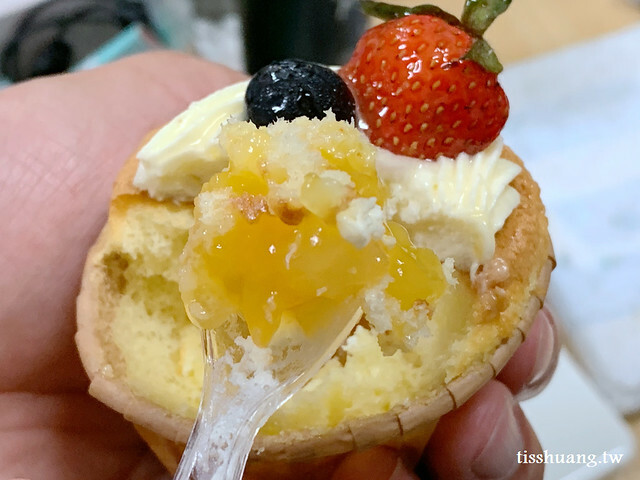 鬼滅之刃杯子蛋糕還有意外的驚喜,內餡有兩種,一種是熱帶水果果醬,一種是草莓果醬,隨機的選擇