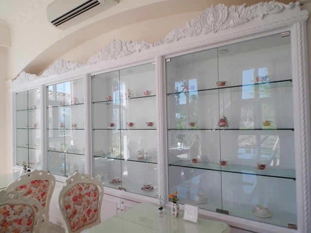 照片重點:旁邊櫥窗擺著各式琳瑯滿目的茶杯。