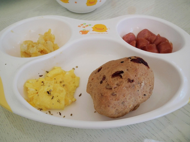 綾綾拿著自己的專屬餐具可樂得很,超想要開動的樣子,是我們拼命