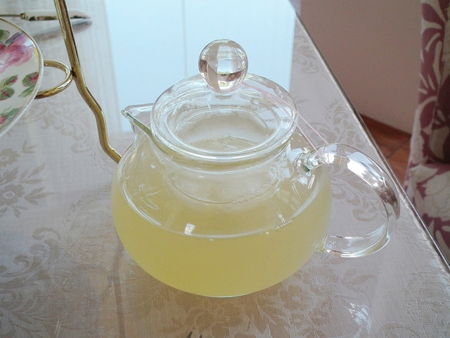 此外,還有一壺冰涼的飲料,是蜂蜜檸檬汁,這茶壺很特別,冰塊是放置在