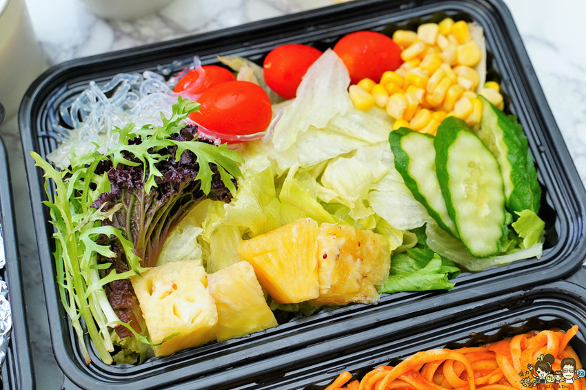 沙拉還有搭配季節性的水果,沙拉醬都會貼心的另外裝,依照個人口味來作添加~