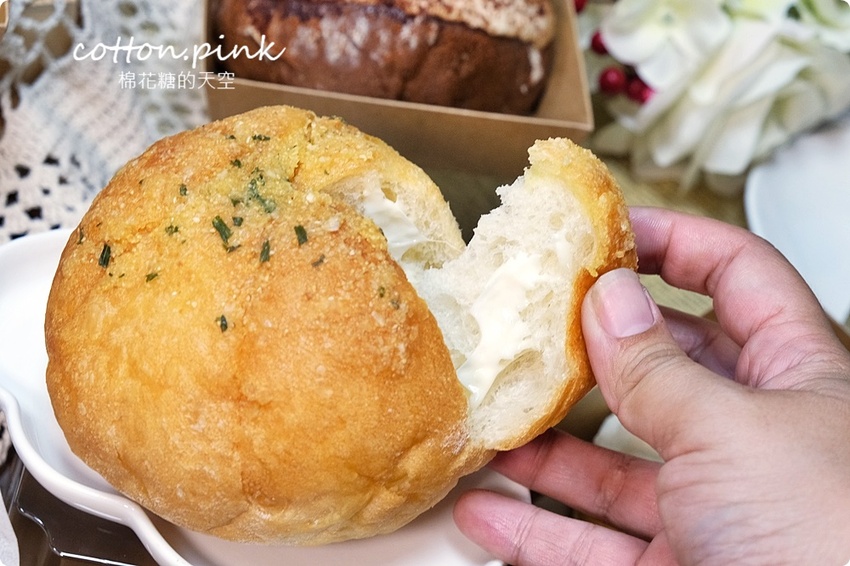 現在很紅的香蒜包~糖印麵包出的是清爽版,蒜香奶油塗滿表面~中間還夾了馬茲瑞拉起司,阿季建議帶回家之後可以與烤箱或是氣炸鍋再稍稍烤一下,外酥內Q超級好吃!