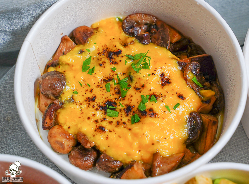 義式風味調味,引出野菇本身的鮮味、甜味,爽口中帶有滑蛋的口感,搭配佛卡夏麵包一起吃也很正點