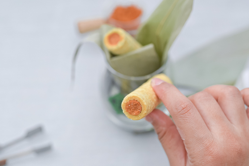 這四款灌餡蛋捲都可以變身為流心蛋捲,微波40秒冷卻2分鐘,餅皮會更酥、香氣也會更濃郁。